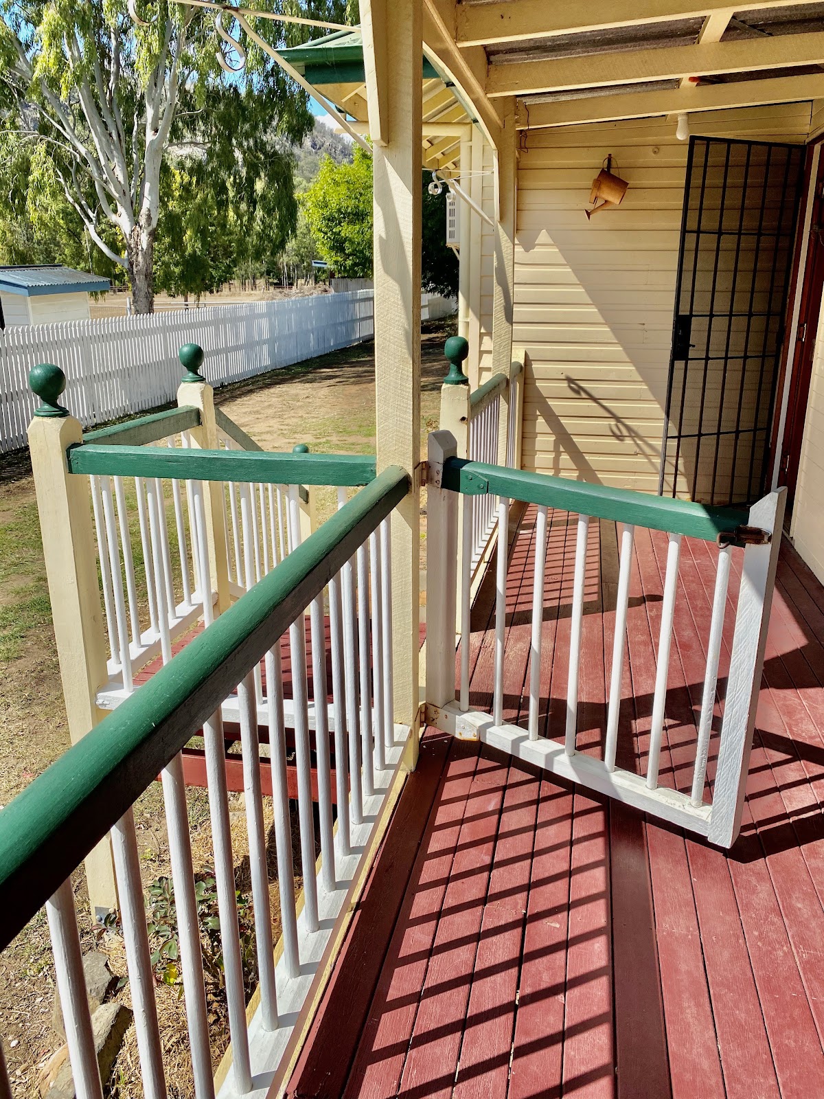 * lovely glass and timber doors , original verandah broomstick dowel balustrades and breadloaf handrails