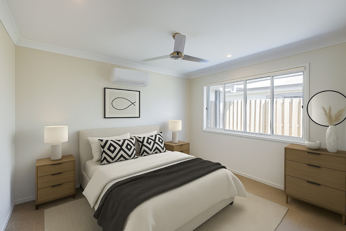 Thoughtfully designed across a single level, the home features four generously proportioned bedrooms, each complete with plush carpets and built-in wardrobes. The master suite is a private retreat, boasting a walk-in robe, air conditioning, ceiling fan, and a sleek ensuite finished to a high standard.