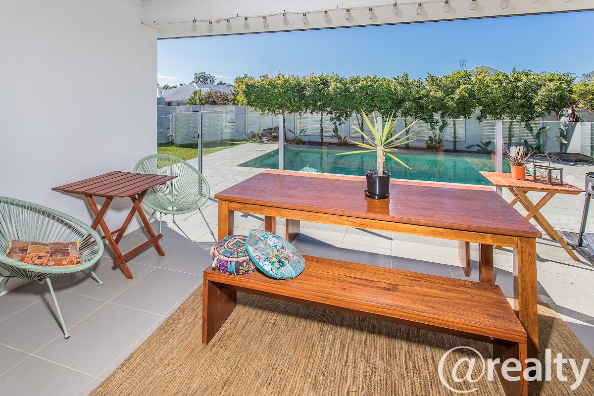 Low-set, on a private elevated 700sqm level allotment, the home is complete with four bedrooms, two bathrooms, large open plan living dining area, well equipped central kitchen, expansive covered alfresco entertaining area overlooking gorgeous in-ground pool visible from nearly every angle of the home.