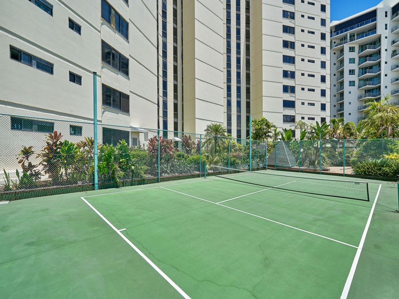 This unit offers very generous open-plan living area, and wide balcony overlooking the Cairns Esplanade. There’s a secure car parking, two swimming pools and a tennis court. It comes fully air-conditioned, tiled throughout, with ensuite and walk-in robe. It’s ready to move into.