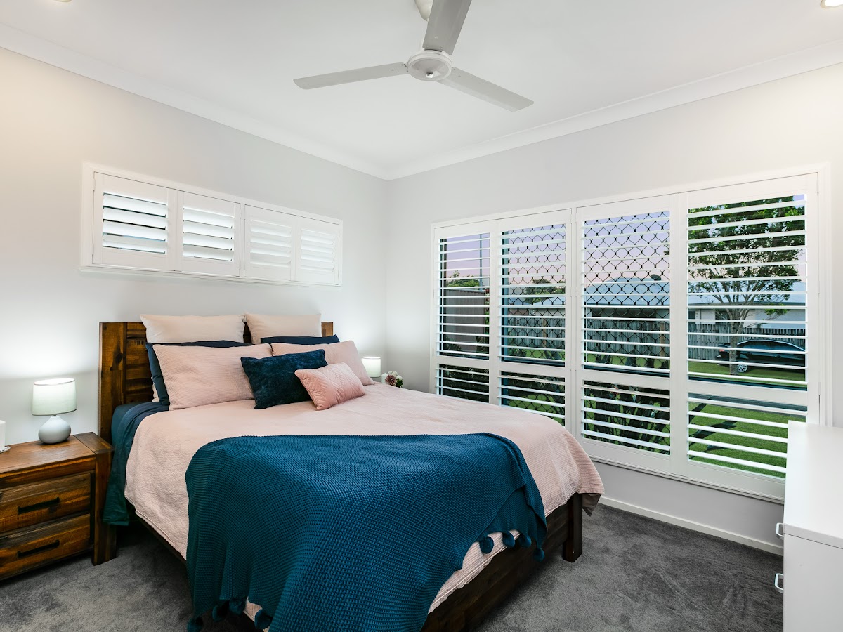 Large windows draw in natural light and are perfectly framed with Plantation Shutters keeping a sweet theme throughout the house, whilst also boasting 2 good-sized patio’s that overlook the pool next to the small pet-friendly backyard.