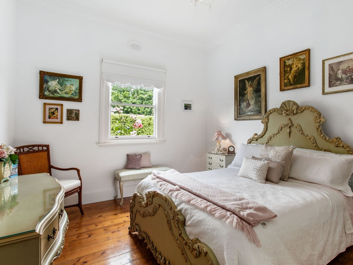 Stunning white kitchen with beautiful blue custom high end Esse cooker, porcelain farmhouse sink, marble bench tops and classic white cabinetry. Period style bathroom includes clawfoot bath, large shower and lovely tessellated tiles.
