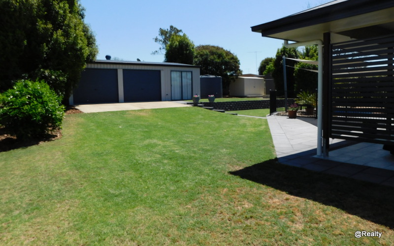 *9m x 6m powered shed with two remote controlled roller doors and sliding glass doors at one end. Garden shed – 3m x 2.3m with concrete floor with all your garden implements. Single carport beside the home. Side access for vehicles to back yard and shed.