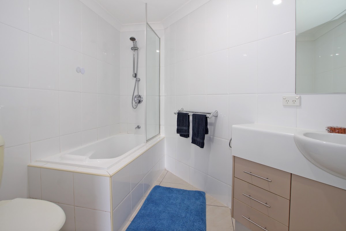 Positioned on the first floor and overlooking the pool this apartments spacious open plan layout takes in the cool breezes and natural light. The spacious lounge and dining area easily flows to the huge balcony. The master bedroom has a walk in robe, ensuite with bathtub and own private balcony.