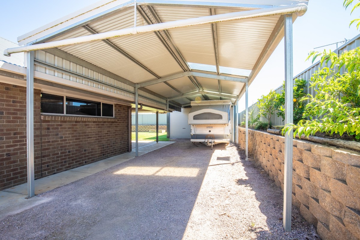 GREAT SHEDS FOR DAD, WITH HIGH CLEARANCE CARPORT IDEAL FOR BOATS AND CARAVANS, DOUBLE COLOUR BOND GARAGE, IDEAL AS A WORKSHOP, PLUS DOUBLE GARAGE UNDER THE MAIN ROOF WITH REMOTES.