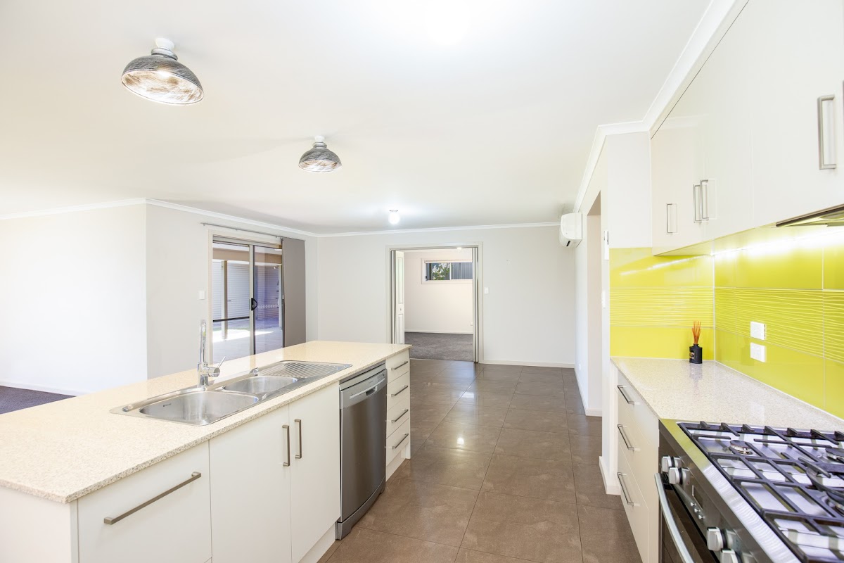 OPEN PLAN LIVING WITH , KITCHEN, MEALS FAMILY ROOM ADJOINING A COVERED PATIO AREA .MODERN KITCHEN INCLUDES, STAINLESS STEEL APPLIANCES AND WALK IN PANTRY. A PRIVATE FAMILY ROOM, ALSO IDEAL AS A THEATRE ROOM. SPLIT SYSTEM AIR-CONDITIONING , SLOW COMBUSTION HEATING AND CEILING FANS KEEP THE HOME THE RIGHT TEMPERATURE ALL YEAR