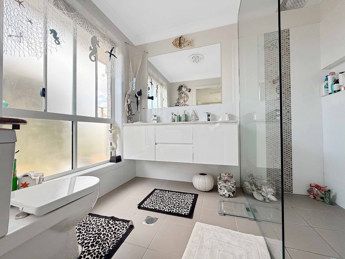 * Ensuite features, floating vanity with dual sinks, rain shower and toilet.