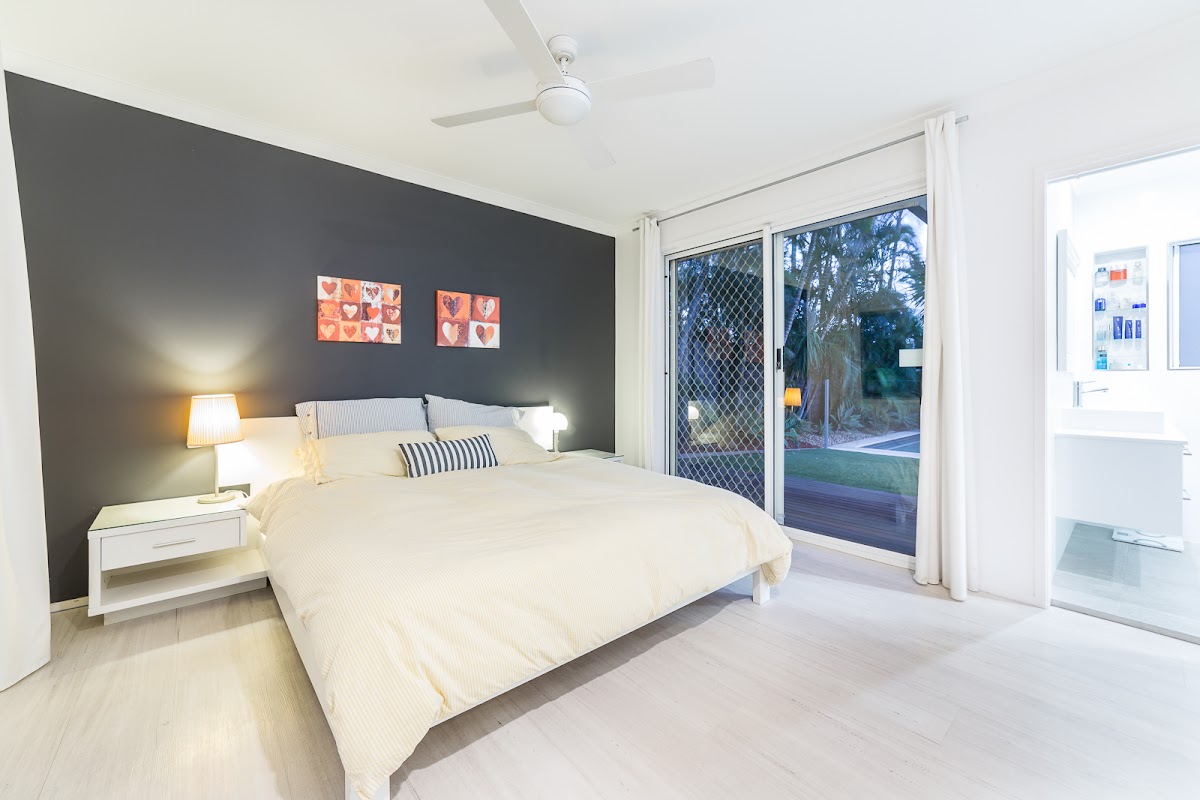 Master suite enjoys a large ensuite bathroom, walk-in-robe and private deck area with relaxing pool and garden views
