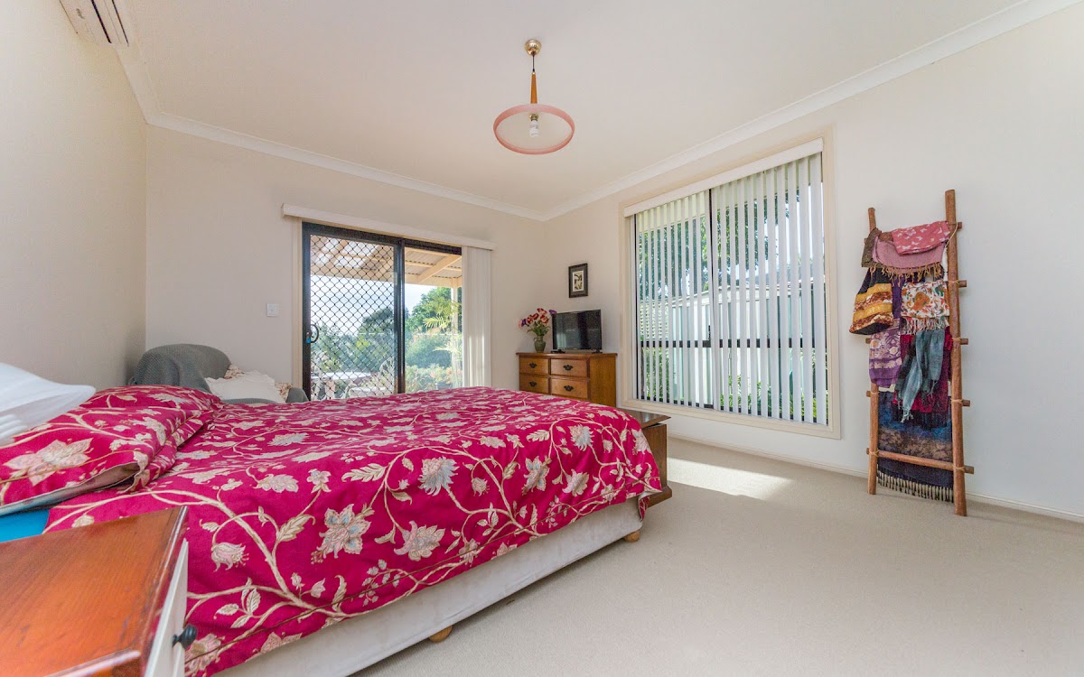 A/C, fans, seperate toilet with basin, large laundry with ample cupboard space, formal entry, tiled living area, garden shed.