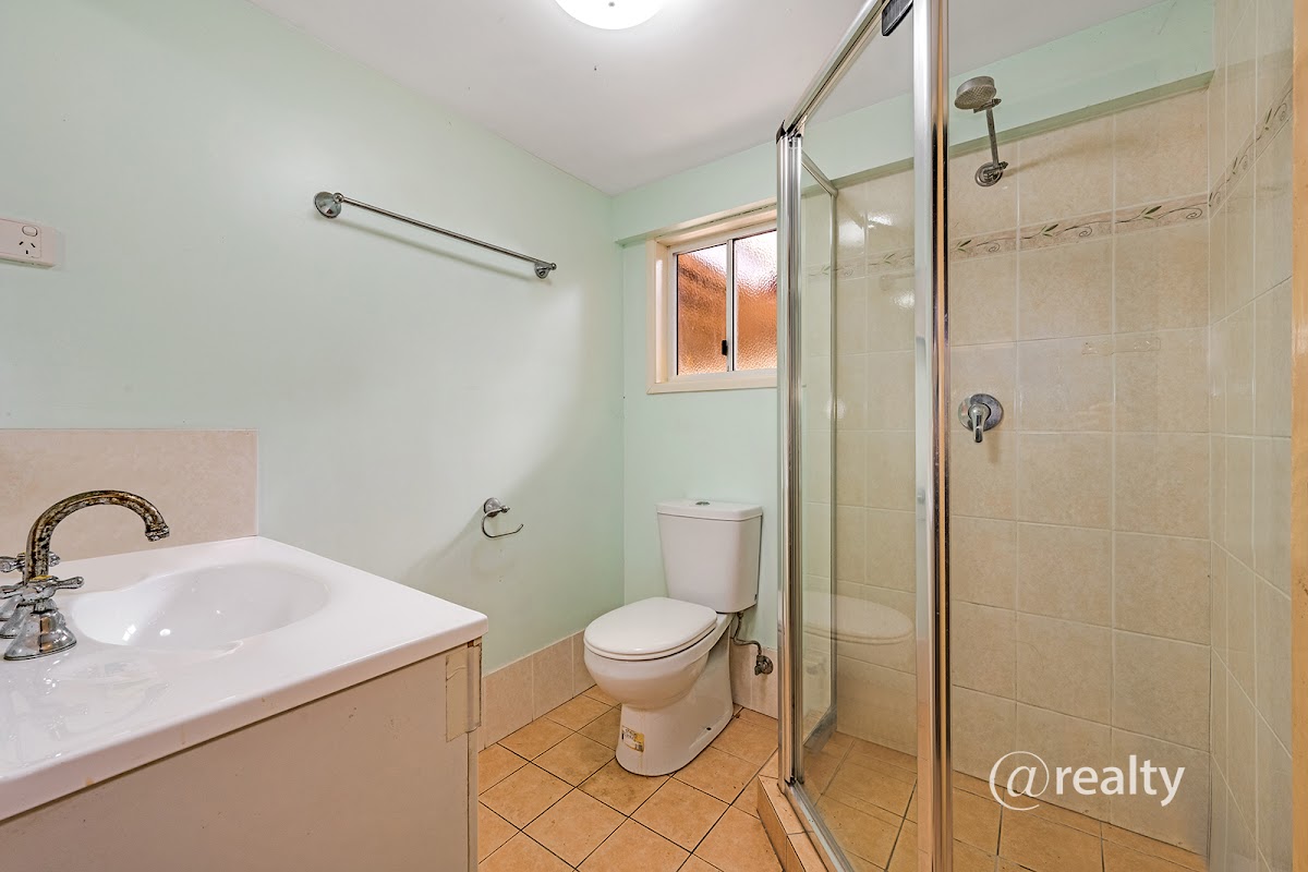 There are 3 bedrooms upstairs, the main boasting a built-in-robe and air conditioner. Also on this level, is a family sized bathroom with large shower, vanity and linen closet.