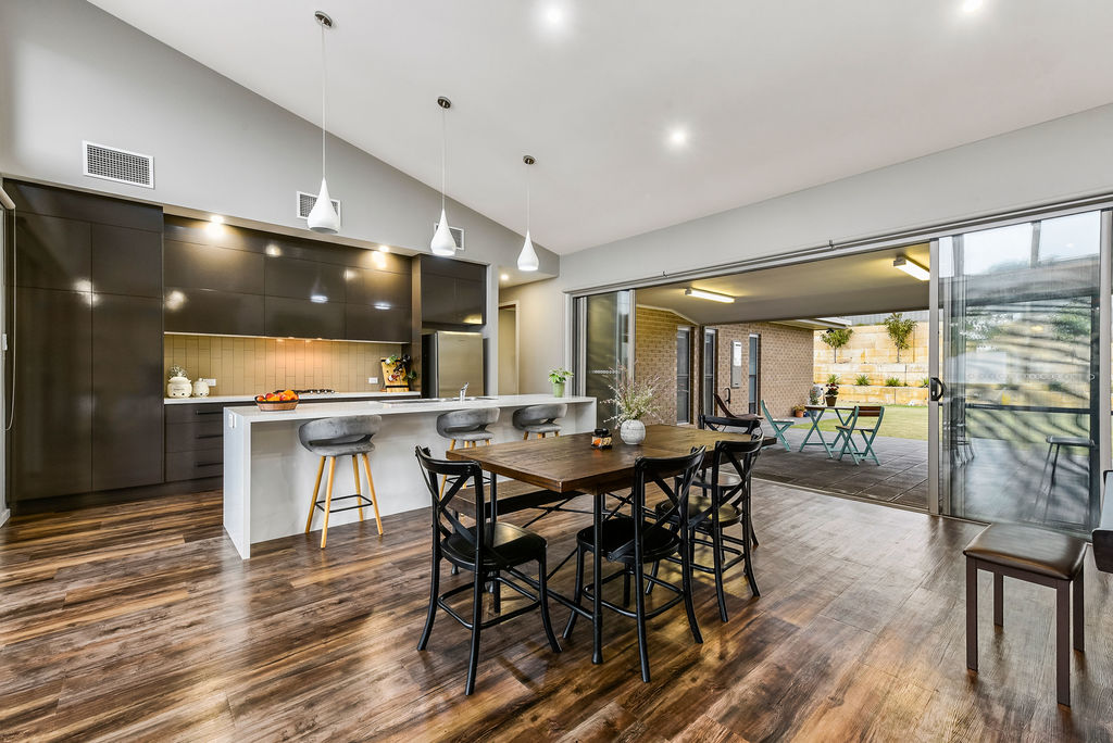 A STUNNING KITCHEN IS THE CENTRE PIECE OF THE HOME , LOOKING OVER A MEALS AREA, FAMILY ROOM AND TWO COVERED OUT DOOR ENTERTAINING AREA, ONE WITH A VERGOLA ROOF, WHICH CAN BE OPENED AND SHUT AUTOMATICALLY TO COMPLEMENT THE REGIONS UNPREDICTABLE WEATHER.