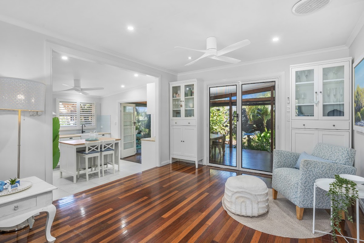 The secluded, light-filled residence showcasing renovated interiors, alfresco entertaining, and relaxed coastal elegance offers the enviable lifestyle the shoreline of Pumicestone Passage provides.