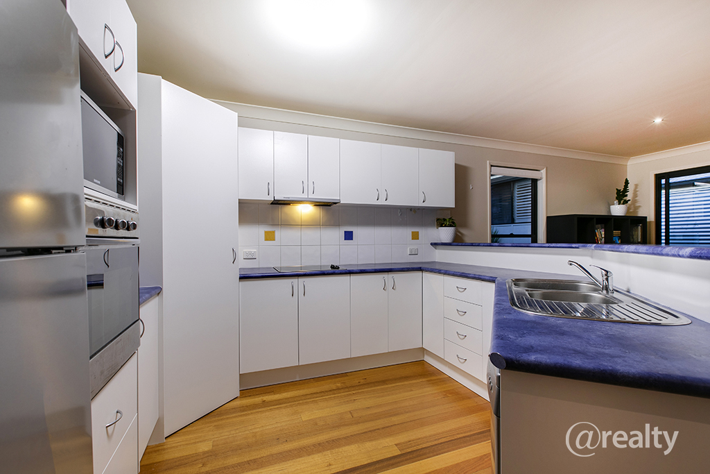 The social hub of the home has lots to offer. A generous updated kitchen with loads of cupboard storage which will have the chef in the family cooking up a storm in air-conditioned comfort. The kitchen and dining space flows seamlessly through the stacker doors out to the impressively large deck allowing you to take advantage of those gorgeous breezes whilst enjoying the view, making it the perfect spot to entertain friends and family. You are spoilt for choice with two private outdoor decks, no matter what time of the day it is you can relax in the peace and serenity of nature.