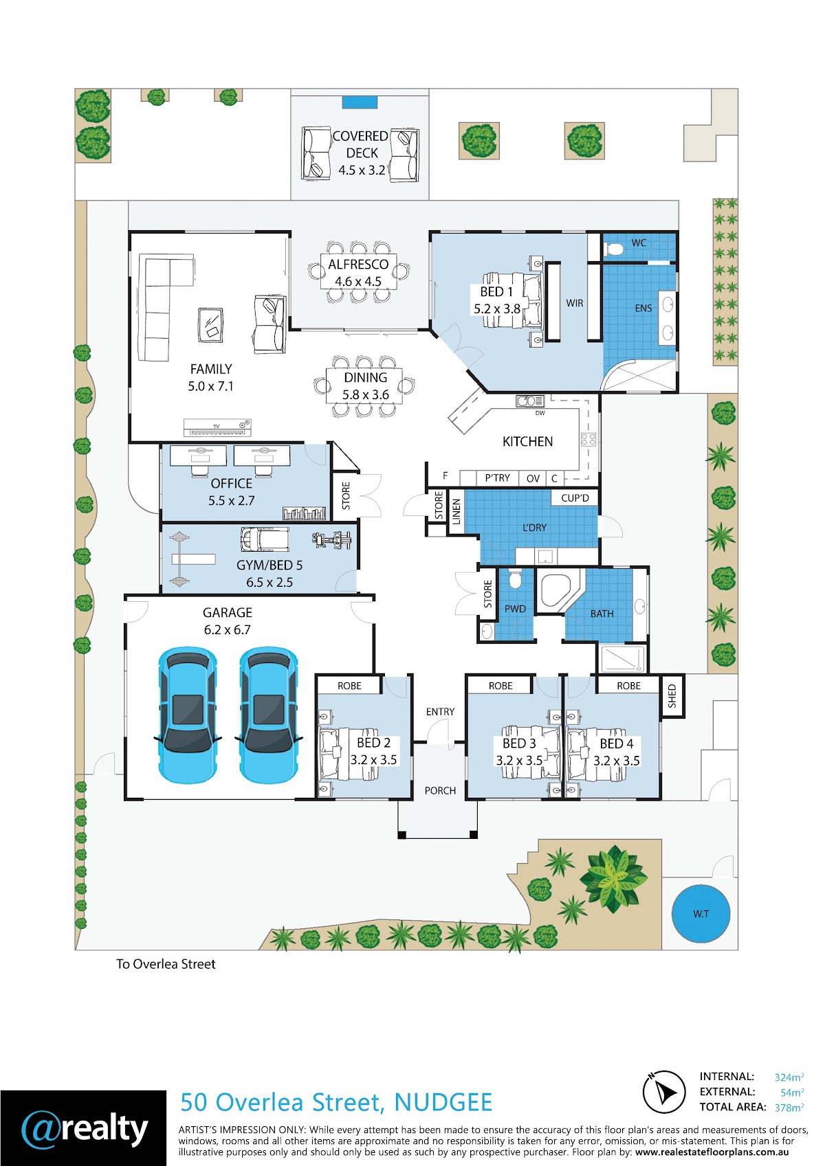 – Of brick construction and with a Colourbond roof, the home has 324 m2 internal area plus an additional 54 m2 external area under the roof