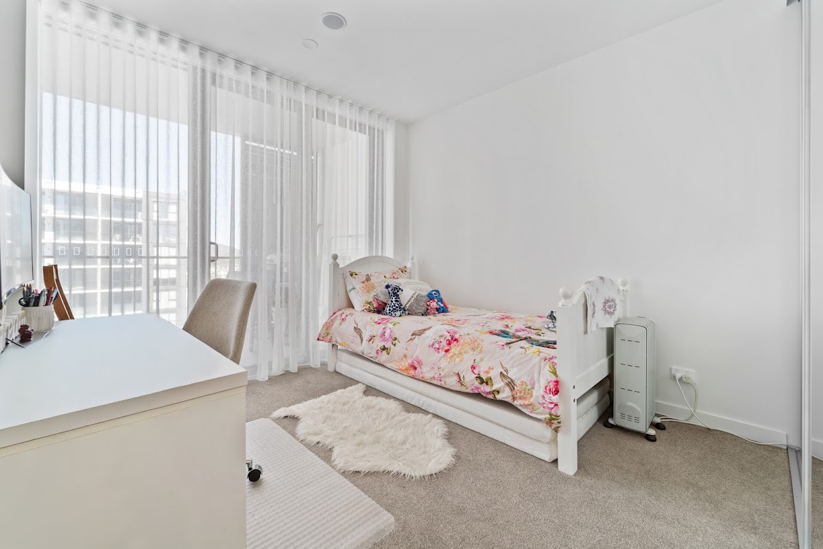 A clever floorplan positions the bedrooms on opposite sides of the apartment, separated by the central living space. This thoughtful layout provides added privacy and quiet — ideal for those who host guests, share with a housemate, or have little ones who appreciate their own space. Both bedrooms are generously sized and filled with natural light, while the master enjoys the comfort of its own private ensuite.