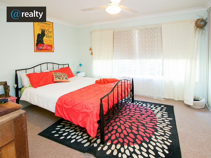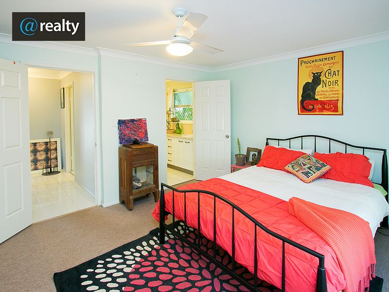 While bedrooms 2 and 3 are on the lower level, the main bedroom is on the upper level. It has a built-in-robe and direct access to the two way bathroom. There are blinds and ceiling fans throughout.