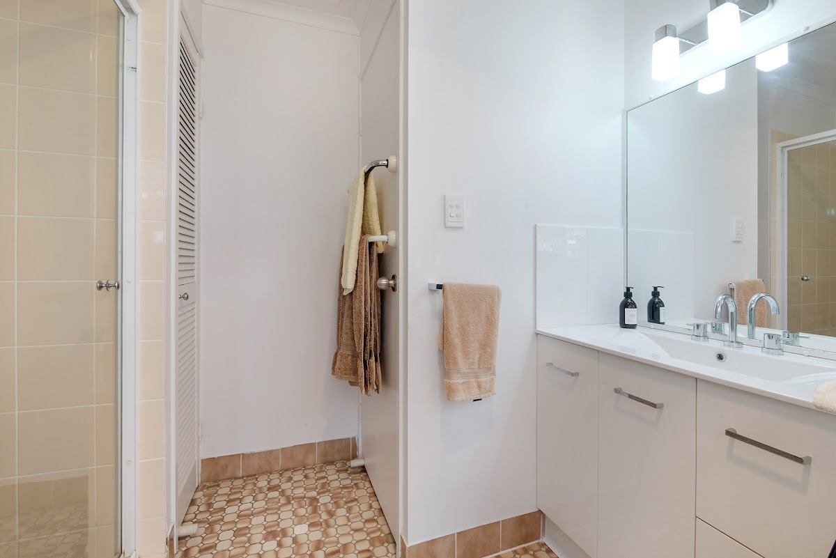 A compact home with a modernised bathroom / laundry area – lovely and clean and light and bright with separate shower and toilet rooms plus storage cupboard.