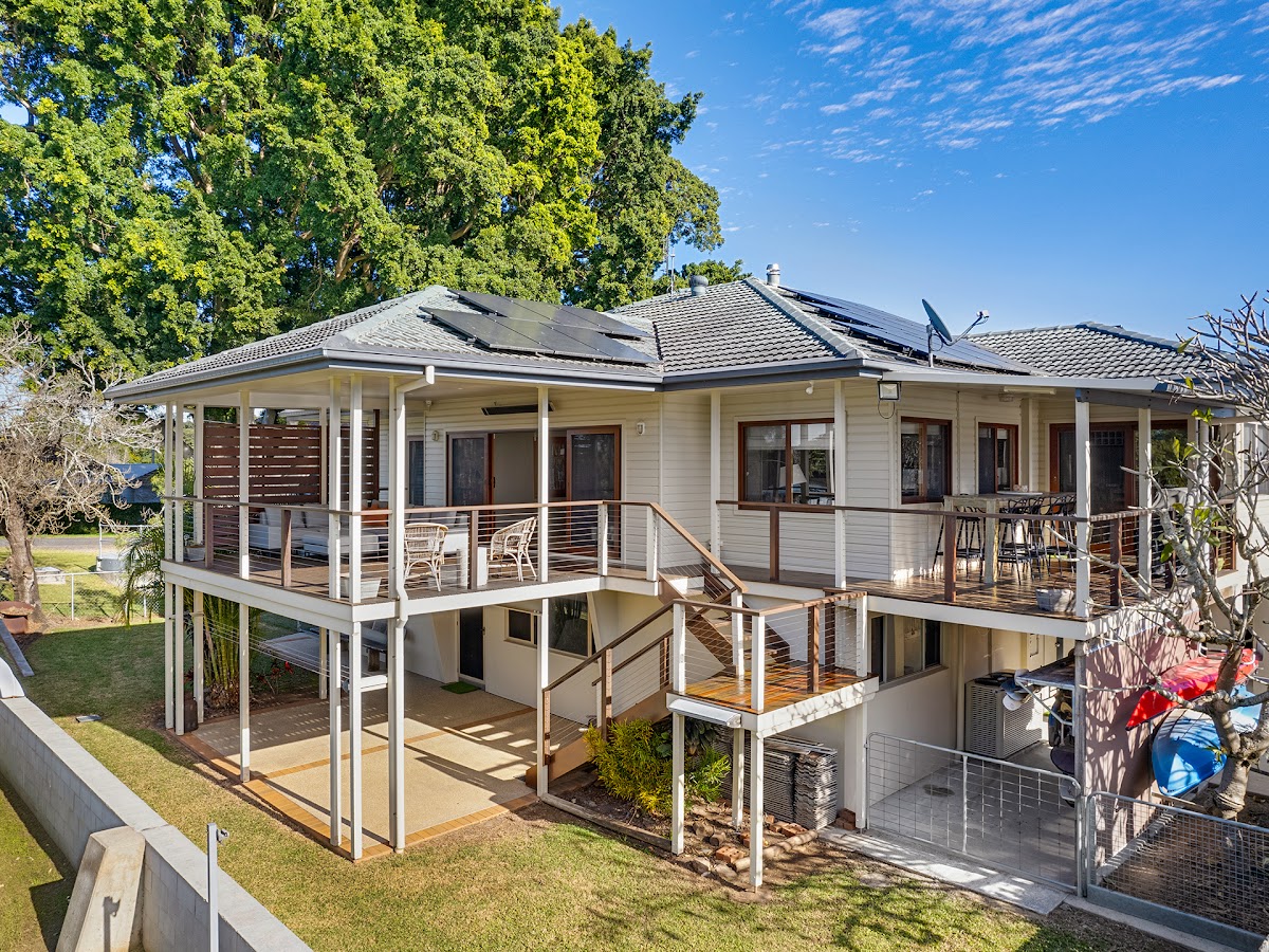 50 minutes to Coffs Harbour, and 90 minutes to Ballina, is this Centerstone on the banks of the Clarence River. Perfectly poised, with only one neighbour to the left and the boat ramp to the right, here, there is a harmonious blend of privacy, ambiance and convenience. Everything is on a grand scale from the remarkable, absolute riverfront allotment of approximately 2755m2, to the colossal home that has proudly developed over time.