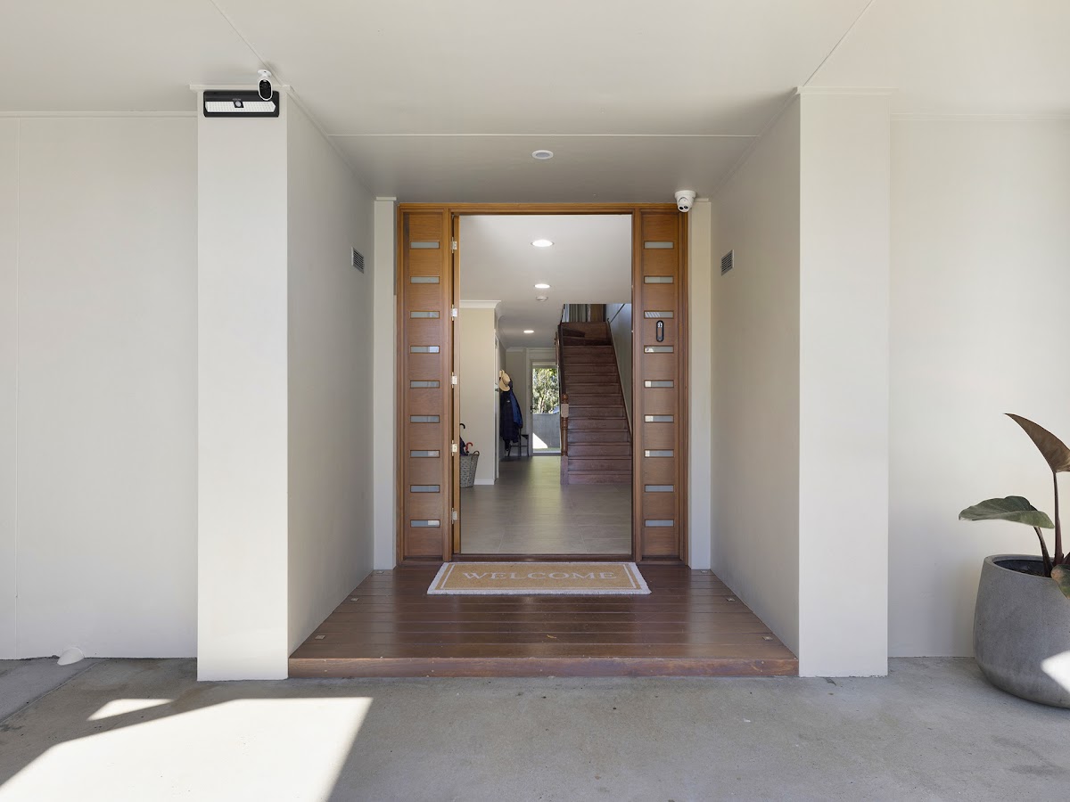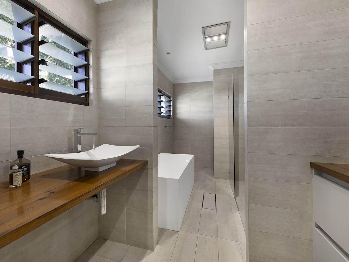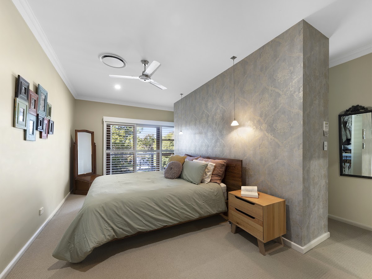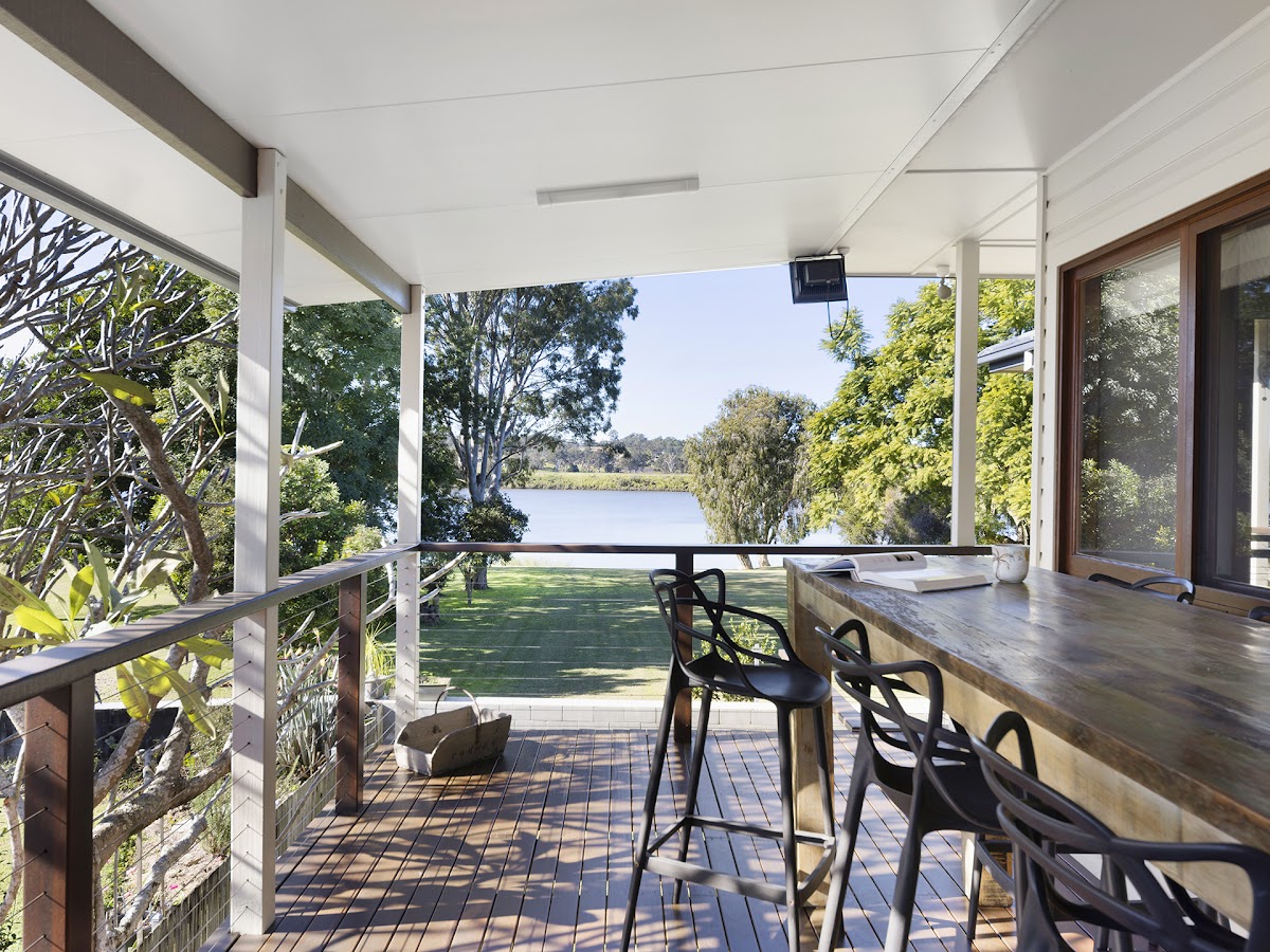 You know you have ‘made it’ when you reach the upper level. From the sophisticated formal living room that retains a little mid-century charm, to the large alfresco deck, here you are drenched in rolling greens and tree-tops reaching those long blue views. Straight behind formal living is the open plan living/dining/kitchen domain being the hub of activity. The kitchen has an abundance of cupboard space, with modern appliances, and a butler’s pantry to compliment. Wood fire heating and ducted air conditioning are there to balance the mood when those river breezes are too fresh for those ‘feels. The 14kw solar system a great support system.