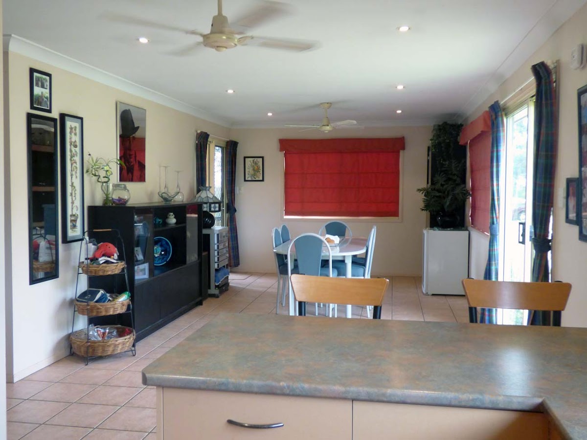 This traditional modern style Queenslander is located up on top of a hill boasting superb 180 degree views of the undulated rural country side; all from a huge full length spacious veranda (3 metres wide). Located only 3 mins drive to town on a bitumen road.