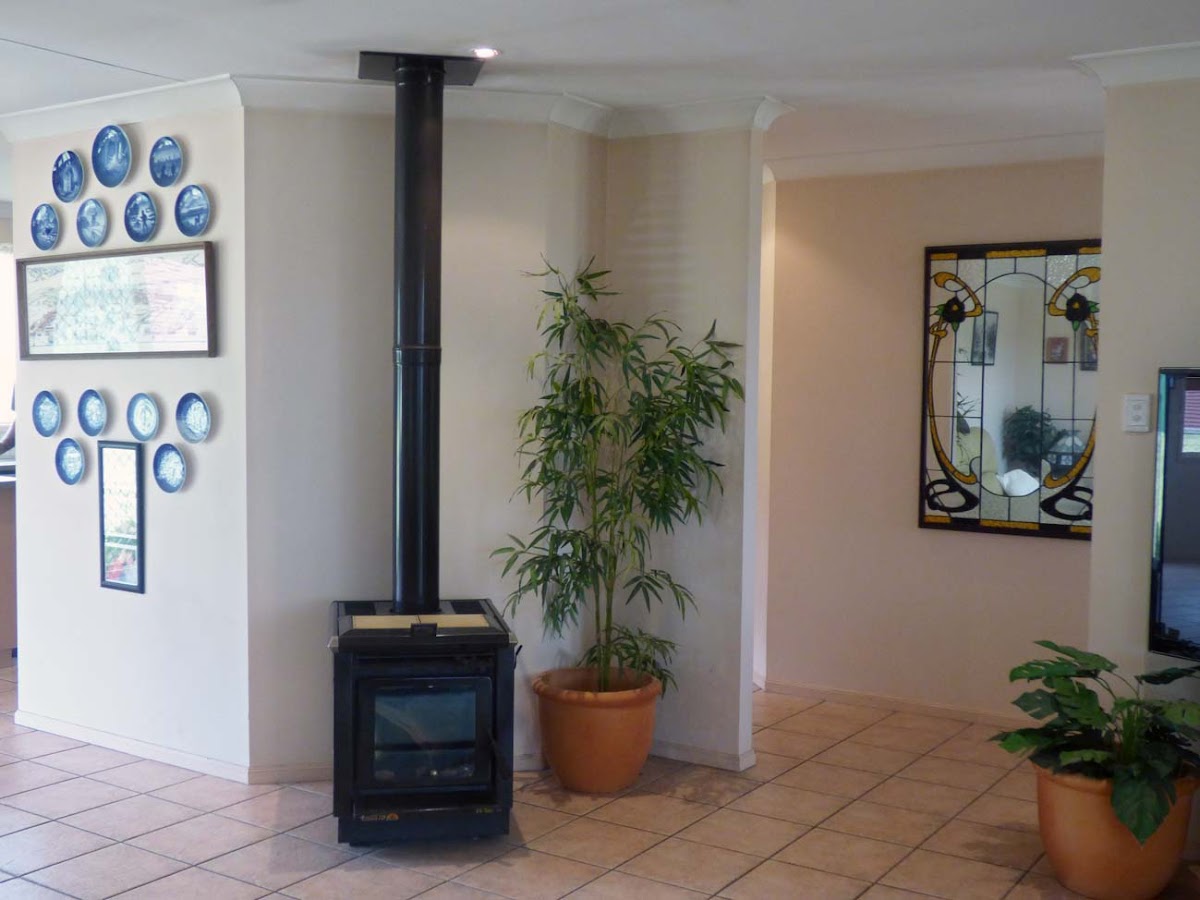 – Wide front steps lead onto the veranda to the main entrance and flows through to a huge spacious lounge room. Sliding doors open up onto the veranda, showing off spectacular views of the rolling hills to the north. Lovely cool breezes in the summer from the north-east flow through to the living areas. Wood heater keeps this area warm and cosy in the winter months.