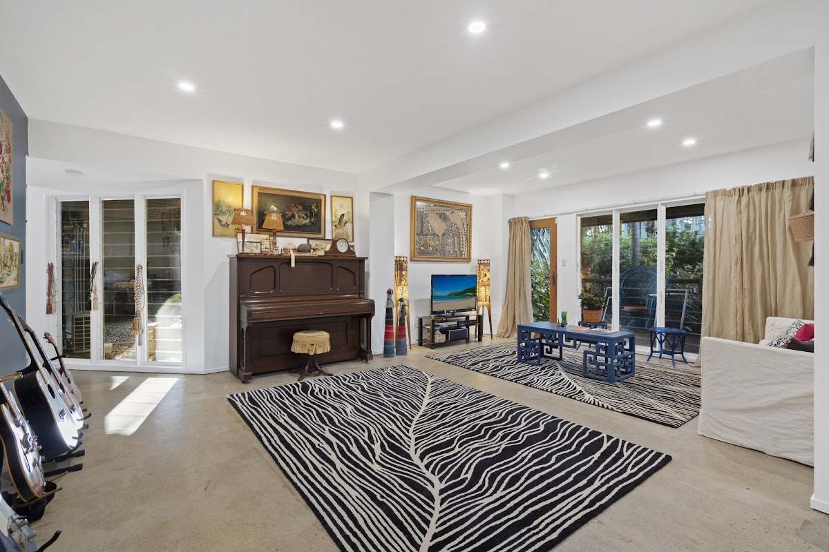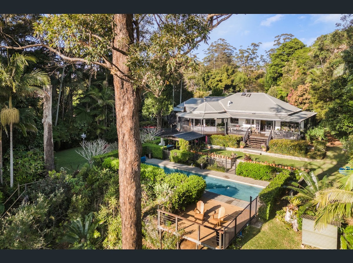 The home sits in complete privacy, flanked by rainforest on each side, while the grounds unfold into a series of carefully designed gardens from tropical to native to cottage. Over fifty varieties of fruit and nut trees provide a perpetual seasonal harvest, while organic vegetable beds bring abundance to every season. A now defunct horse arena still fenced, is now a rose garden that fills
