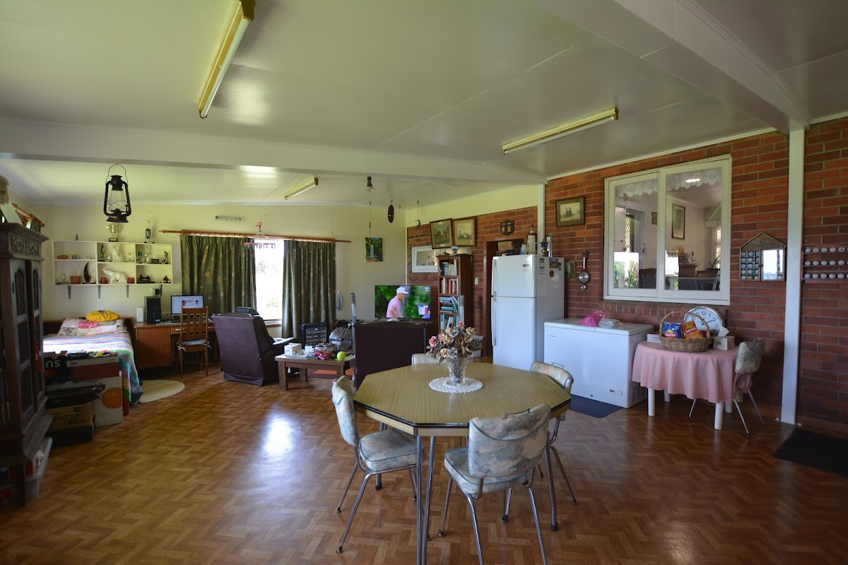The backyard offers some fruit trees, green house and a garden shed and maybe the odd cow walking past in the neighboring paddock.