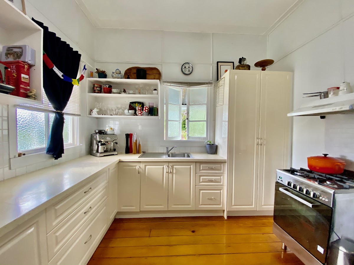 * Lovely Kitchen with dining , new Italian Gas Stove/ oven beautiful pine flooring and loads of bench top prep area