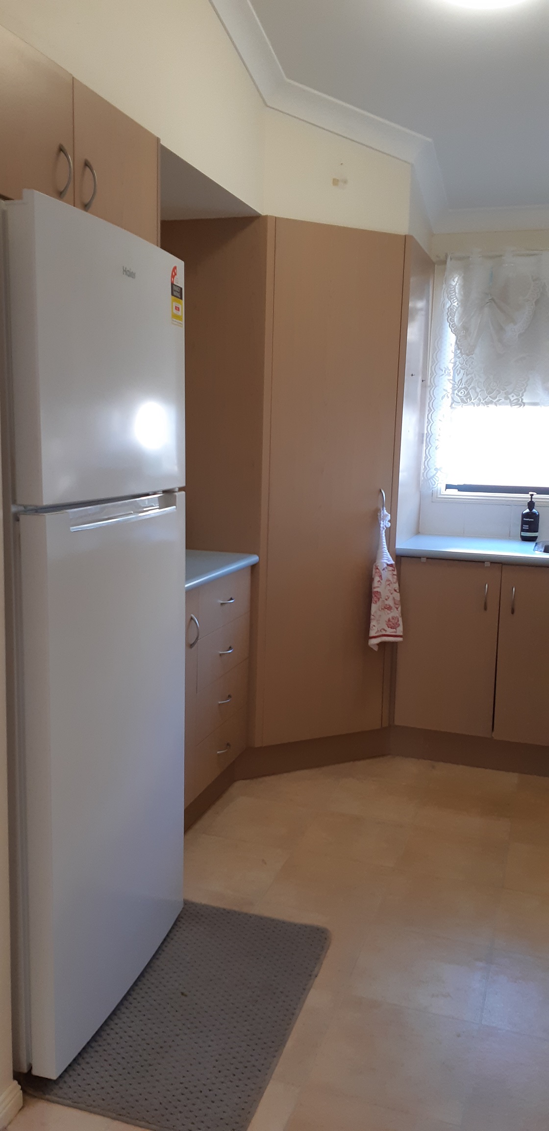 Electric kitchen with large corner pantry, wall oven and extra wide fridge space