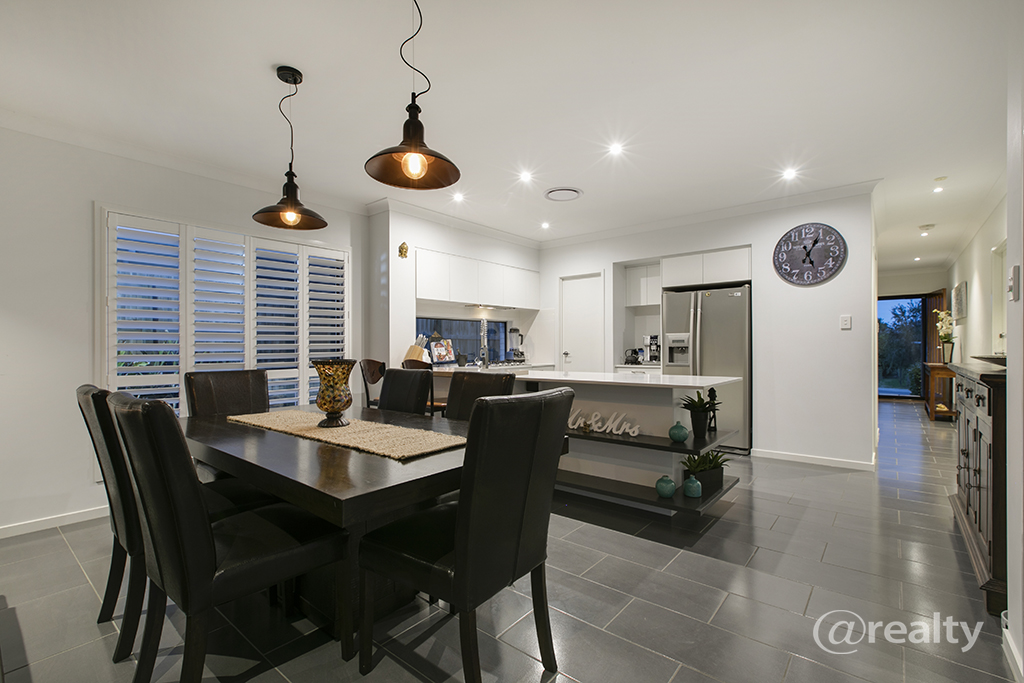 As you enter this immaculate home you will begin to appreciate the quality fixtures and fittings within. An inviting hallway leads you to the hub of the home – an open plan dining, living and gourmet kitchen with stone benchtops, 5 burner gas cooktop, walk in pantry and two drawer dishwasher all make cooking up a storm a breeze whilst the family can sit at the breakfast bench and discuss the days happenings.