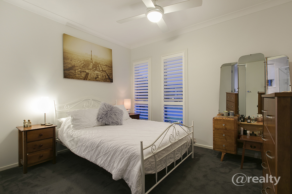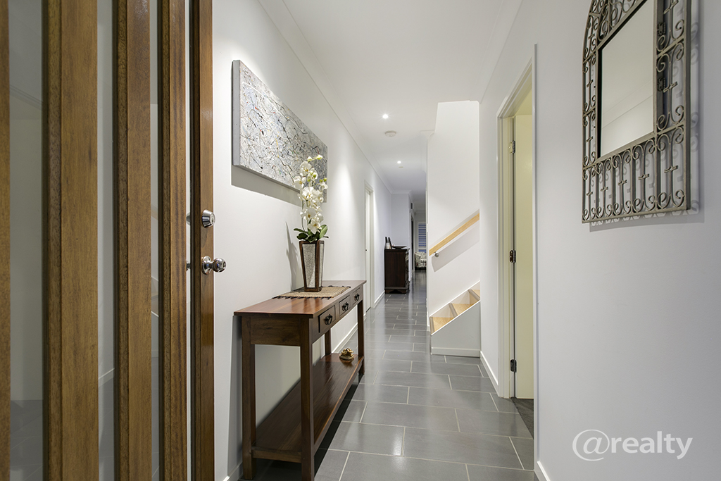 Presenting to the market this luxurious two storey five bedroom plus separate study home situated on a 450m2 fully fenced block in a quiet location walking distance to a fabulous family park. This home boasts all the extra’s so you will be the envy of your friends and family – inground saltwater pool, home cinema, security system, crim-safe screens and plantation shutters just to name a few!
