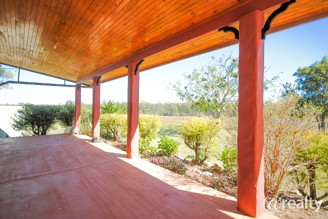 The unique 3 bedroom lowset Country/Mediterranean styled home is extremely well-built and solid. The home features exposed timber raked ceilings in the living areas. Wide opening glass doors lead outside and frame the stunning views of the open countryside. Open plan living areas and full length private rear patio. Perfect for that afternoon drink and watching the stunning sunset views. The potential for this property is plenty. But one thought comes to mind. It would suit cabins or farm stay. There is already a rustic self-contained cabin on the property complete with slate floor, combustion stove, and slab timber wall cladding. Ideal for renting or accommodation for visiting family and friends. Set far enough away from the main home for privacy.
