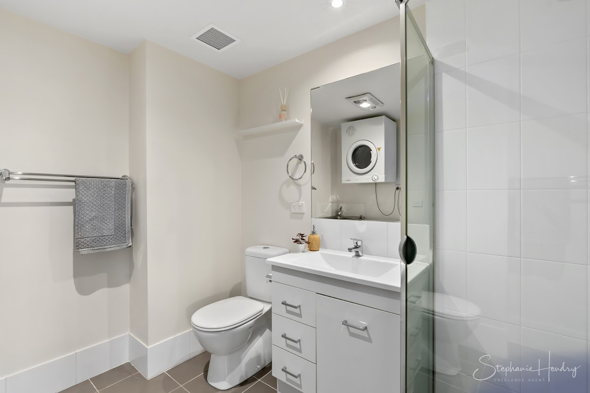 • Main bathroom with separate shower, vanity and toilet, and laundry with clothes dryer