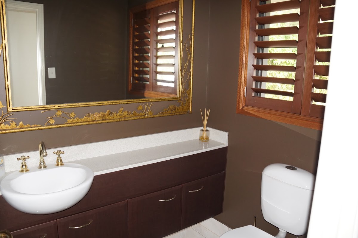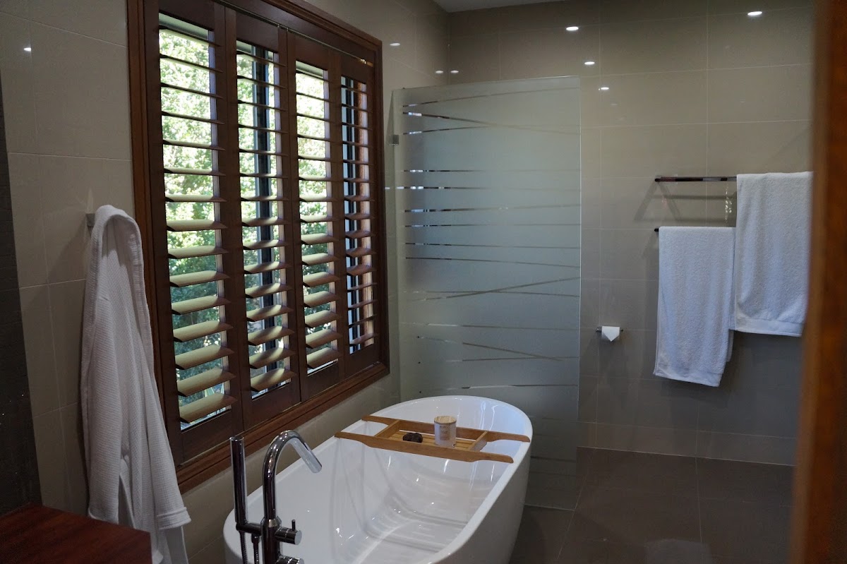 The Japanese screen doors and plantation shutters complete the ambient feel inside.