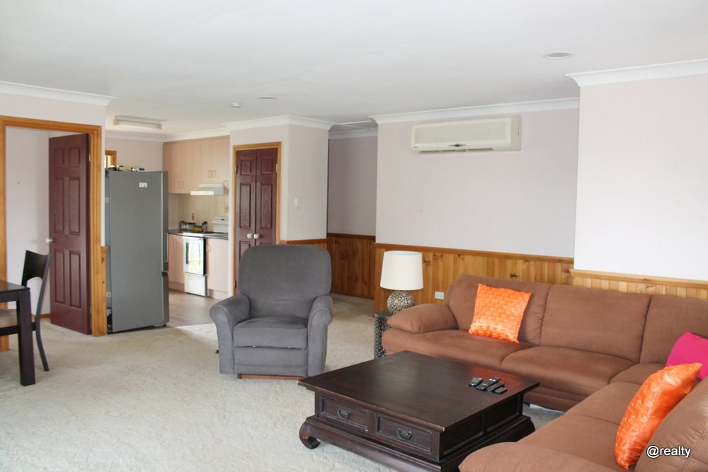 *The living area is very spacious and looks out to the verandahs on two sides. The kitchen is a galley style but very functional and leads off from the living area.