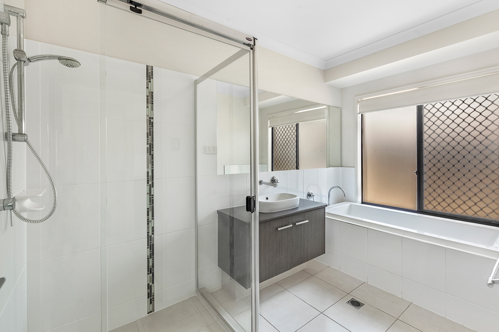 Main Bathroom complete with bath, shower and vanity with stone bench top