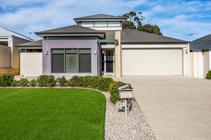 The large double driveway, frontage alfresco and surrounds of the home are finished with Eucalyptus exposed aggregate, low maintenance garden beds and no maintenance quality artificial turf.