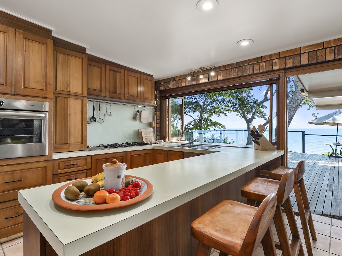 This jewel in the Crown discreetly nestles on an elevated 819sqm cliff top site, in one of Cairns most sought-after locations. With limited opportunities available, seldom do we see properties of this calibre come on the market. Built around the early 1980’s, this architectural “tour de force”, was well ahead of its time with its unusual roof angles and raked ceilings. Encompassed in materials befitting its surroundings, this brick and timber home blends effortlessly into the natural environment that cocoons it. From the bushland birdsong in your garden and out to the turquoise hues of the pristine Coral Sea and beyond, to the far horizons of the emerald, green world heritage rainforest, the views are truly breathtaking.