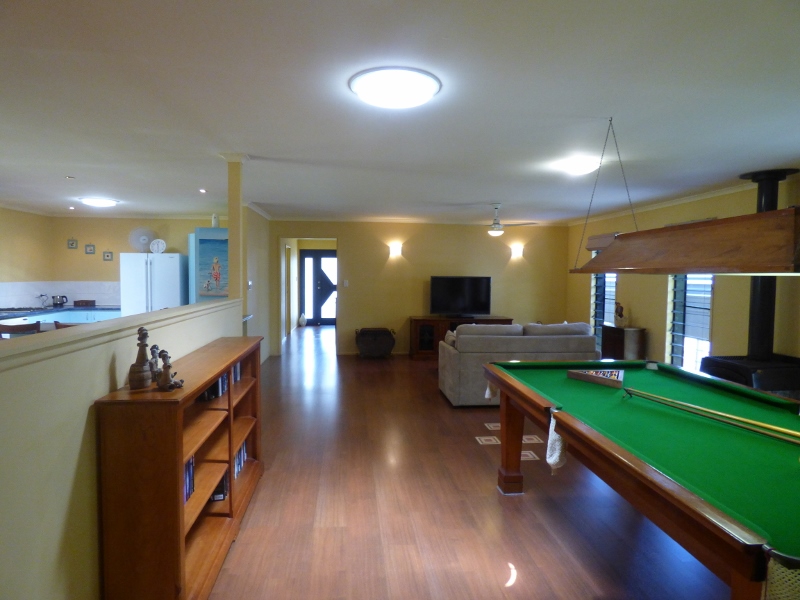 Sometimes a home comes along that you just fall in love with, and this is one of those homes!! Upon entering the home there is an immediate WOW factor because the home is deceiving from the front, and is in fact an extremely spacious home! The light and airy master bedroom with ensuite is to your right, and next to that a converted garage which could be a bedroom, or anything your heart desires! Going down the hallway you come to an absolutely huge lounge/family room with a pool table – which is the price is right will stay. To the side is a very spacious kitchen with dishwasher, and dining area. The kitchen overlooks a family sized deck which would be an absolute delight for that family get together. From this delightful deck you are immediately taken by a superbly landscaped garden oasis which is so tranquil and peaceful, and leads down to a little creek – you could be anywhere! – you would spend most of your time out here!! Leading off the kitchen are another two large bedrooms and another bathroom – all nicely tucked away from the master. There is a separate double garage at the front of the home and a double carport – all this in a peaceful cul-de-sac!! There are solar panels and a water tank saving you $$$ All in all, this is an outstanding home, which to the astute purchaser wanting to buy their own piece of paradise represents outstanding value for money. But, don’t just take my word for it!! – book your personal viewing by call Janet Young – you won’t be disappointed!!