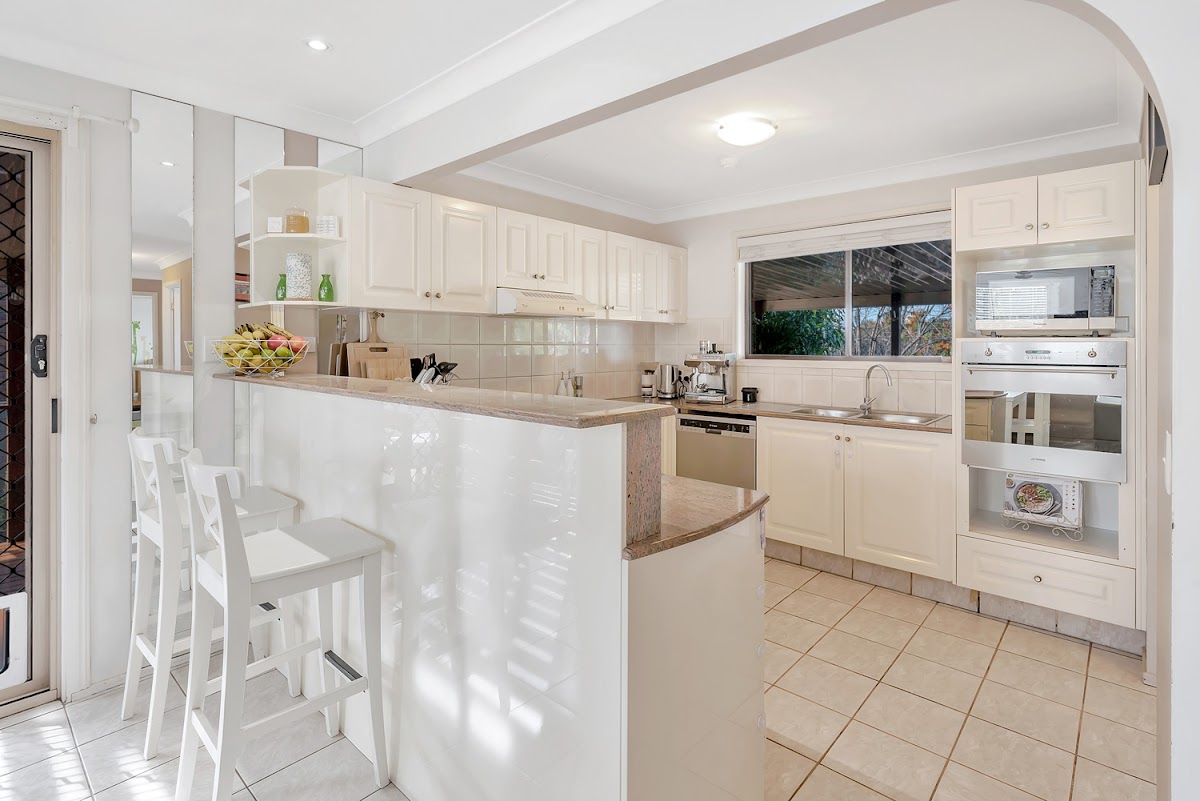 All the bedrooms have built-in robes, ceiling fans and easy-care flooring. The glossy kitchen with loads of storage and a pantry, overlooks the dining and living areas and all the way through to the fully fenced, grassed front yard. The open plan living area is air-conditioned and tiled throughout, and the updated bathroom is fresh and bright.