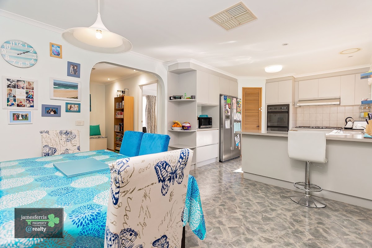 comprising a large living zone, 4 bedrooms and central kitchen/ meals area this residence ticks all the boxes. It offers both ducted heating and cooling ensuring year round comfort an additional bungalow in the rear yard could be used as another bedroom or games room for the kids.
