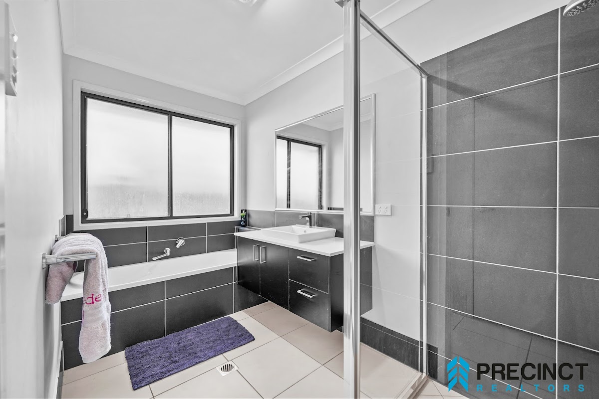 Ensuite featuring double shower, rainfall showerhead and double basins.