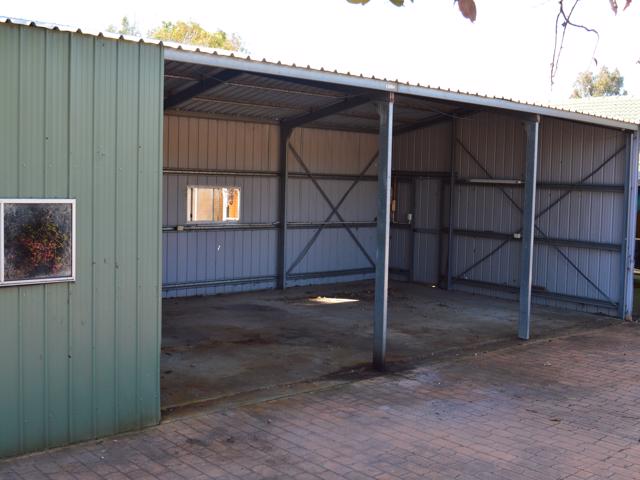 At the rear of the home is a steel frame shed with enclosed workshop. The shed has 4 bays – 3 open and the workshop.