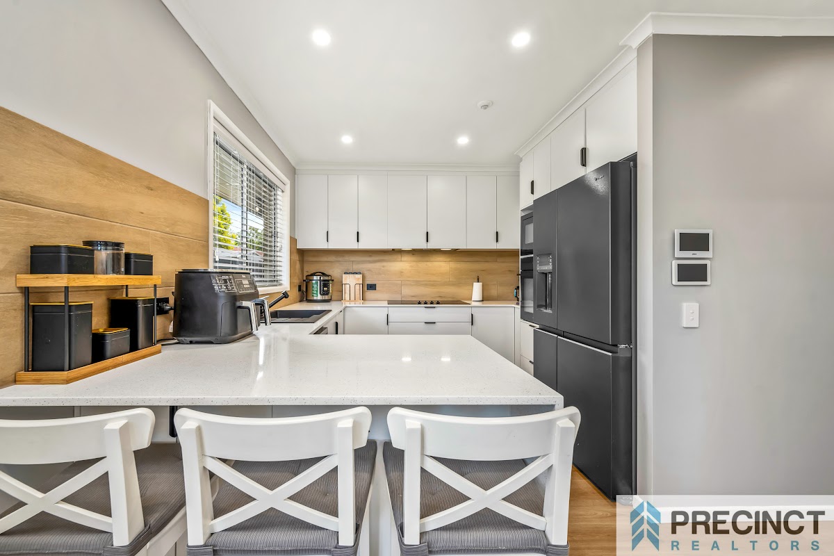 At the core of the property is the gourmet kitchen a true showpiece, featuring premium appliances, a self-cleaning oven, a 900mm ceramic cooktop, built-in dishwasher, soft-close cabinetry, built-in bin, plumbed fridge connection, stone benchtops, and a well-appointed built-in pantry.