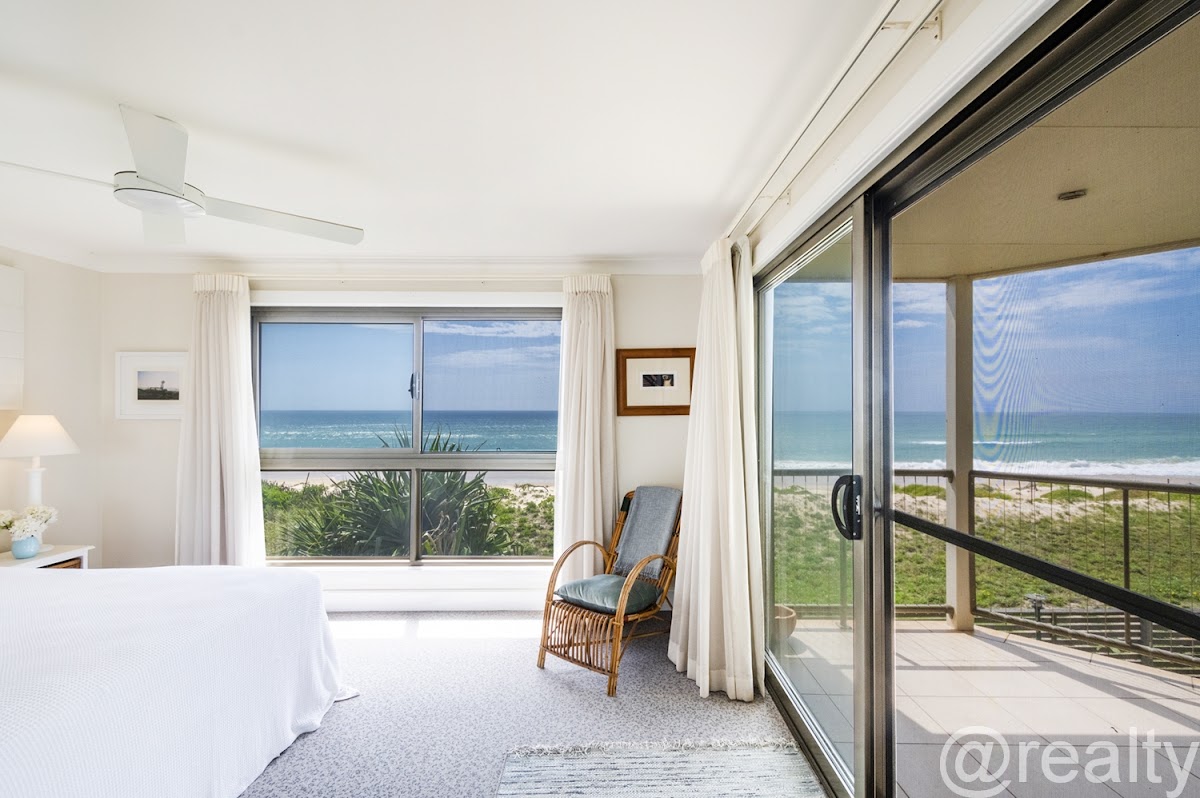 The ground floor provides studio living or a comfortable day area opening up to ocean views, shady patio and a tropical fully fenced yard to the dune. The mid floor offers relaxing living spaces and balcony with ocean and national park views, office nook and 3 substantial bedrooms.