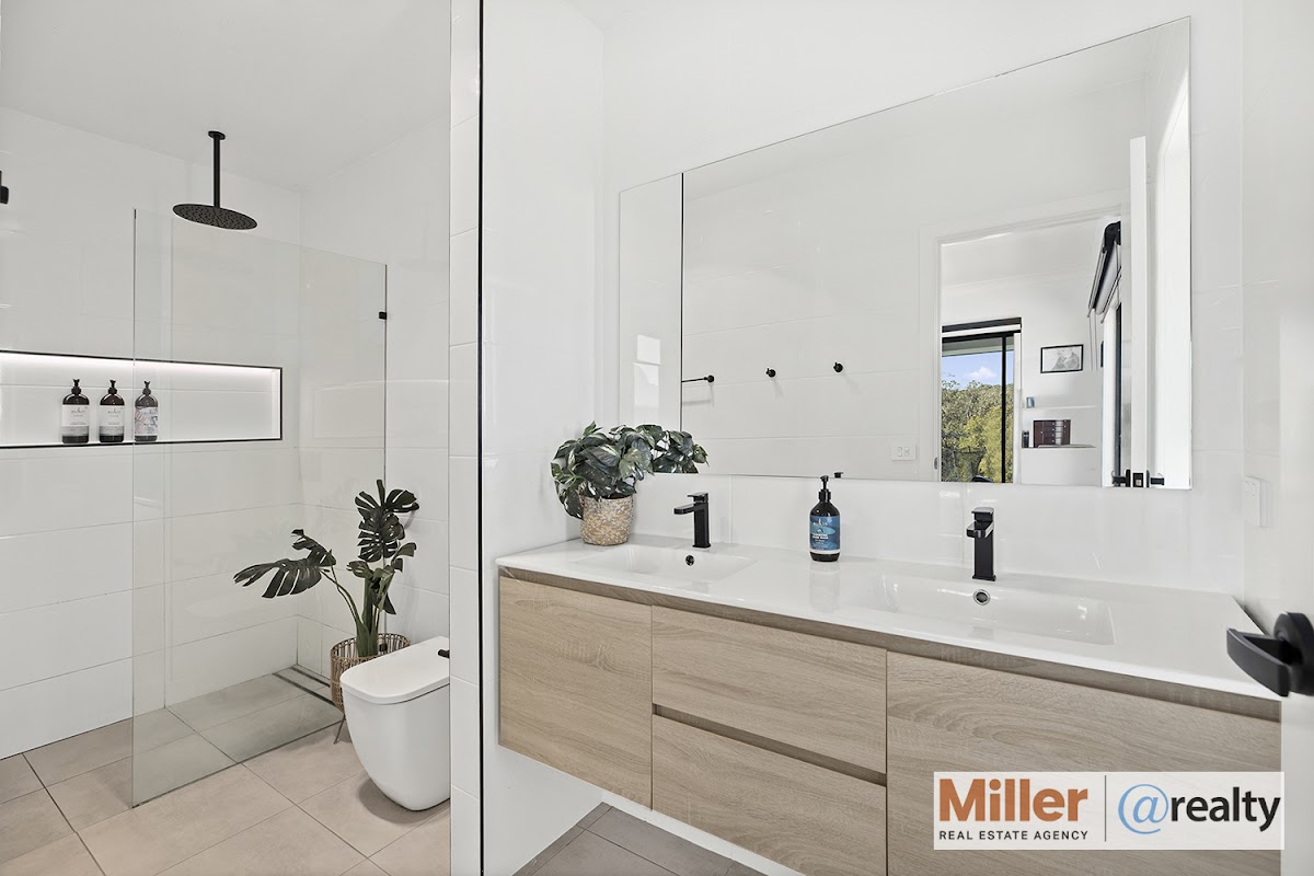 The master bedroom is a true retreat, complete with a private ensuite, walkin wardrobe and expansive windows that frame beautiful rural views, bringing the outside in and filling the space with natural light. Three additional bedrooms, all with built-in wardrobes, ensure comfortable living for the whole family. A dedicated study nook at the entrance provides the perfect space for working from home or quiet contemplation.