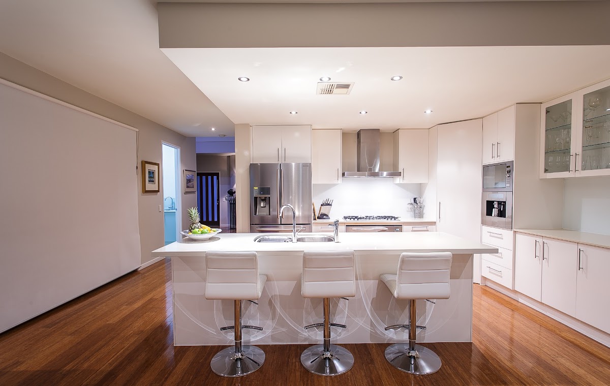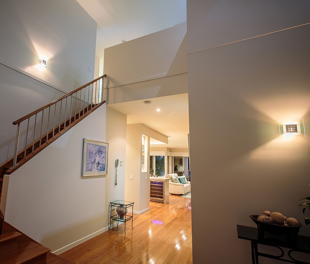 All the upstairs mezzanine area has a study/rumpus area with Bamboo flooring. The bedrooms have walk-in robes and bespoke blackout window coverings, flat screen TV’s, wool carpets and with some enjoying views over Highland Park. The home has Vacumaid and fly screens throughout.