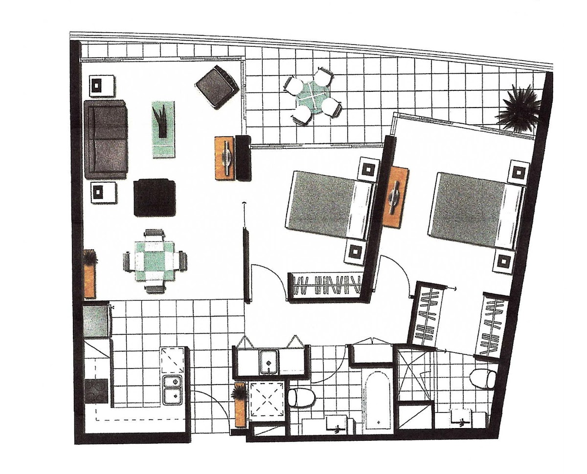Every room in this apartment opens out to a North facing balcony with Water and City views.