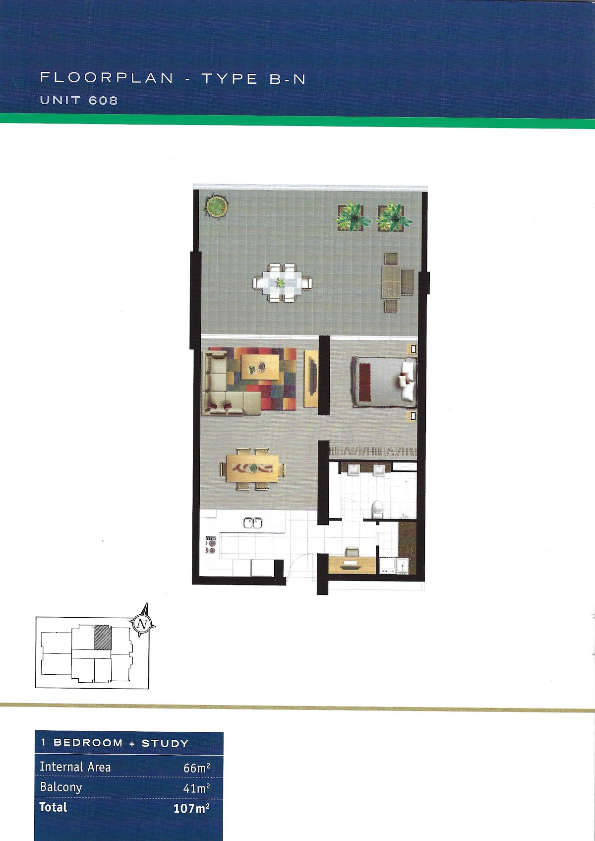 This spacious ONE Bedroom Plus Study Space has one of the biggest balconies in the building.