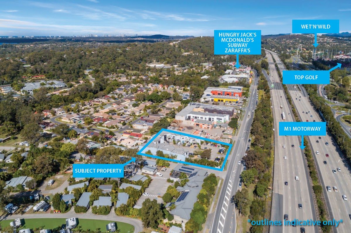 The property is prominently located on Siganto Drive at Helensvale, fronting and exposed to the M1 Motorway. It is surrounded by national retailers and operators such as Good Guys, JB HI FI, Bunnings, Aldi, McDonalds, Hungry Jacks, Zarraffas and opposite world famous Gold Coast attractions Warner Brothers Movie World, Wet n Wild and Top Golf.